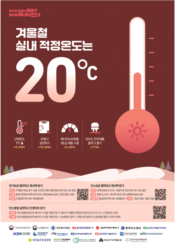 ±âÈÄ¿¡³ÊÁöȯ°æºÎ(Àå°ü ±è¼ºÈ¯)´Â 12¿ù 2ÀÏ ¿Âµå¸²¼Ò»çÀÌ¾îÆ¼(¼¿ï Áß±¸ ¼ÒÀç)¿¡¼ °Ü¿ïö ¿¡³ÊÁöÀý¾à Ä·ÆäÀÎ Ãâ¹ü½ÄÀ» °³ÃÖÇϰí, ¡®°Ü¿ïö ÀûÁ¤ ½Ç³»¿Âµµ 20¡É ÁöŰ±â¡¯¸¦ Áß½ÉÀ¸·Î ¡®¹® ´Ý°í ³¹æ¡¯, ¡®°¡½º¡¤Àü±â Àý¾àÇϰí ij½Ã¹é ¹Þ±â¡¯ µîÀÇ ½Çõ¿ä·ÉÀ» ¾Ë¸°´Ù.
