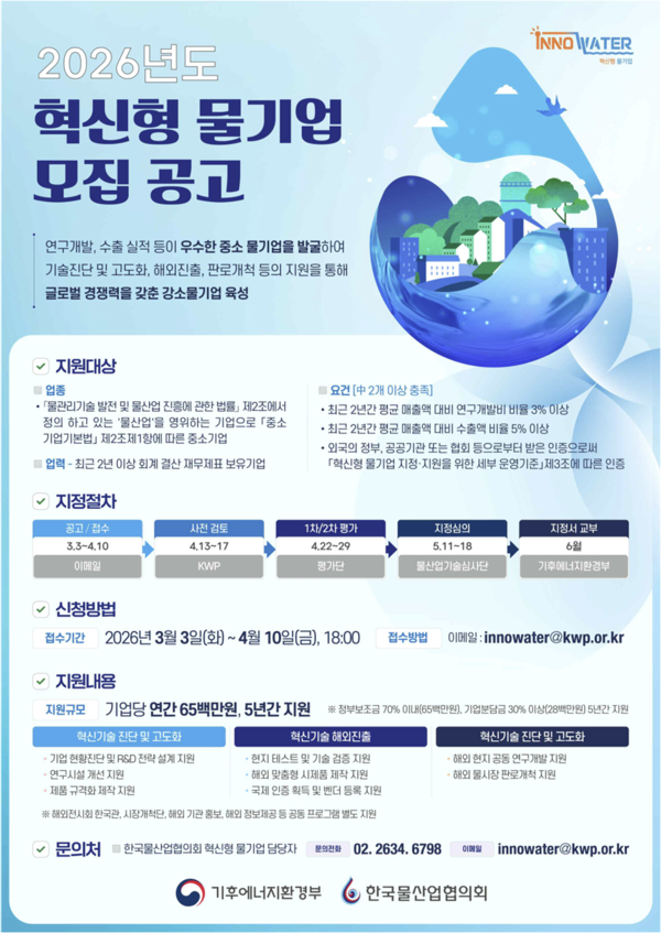 ±èÁö¿µ ±âÈÄ¿¡³ÊÁöȯ°æºÎ ¹°ÀÌ¿ëÁ¤Ã¥°üÀº ¡°Çõ½ÅÇü ¹°±â¾÷Àº ±¹³» °¼Ò ¹°±â¾÷À» ¹ß±¼¡¤À°¼ºÇÏ´Â ÇÙ½É ÇÁ·Î±×·¥À¸·Î ÀÚ¸®¸Å±èÇÏ¿´´Ù¡±¶ó¸ç, ¡°¾ÕÀ¸·Îµµ ¿ì¼öÇÑ ±â¼ú·Â°ú ¼öÃâ °æÀï·ÂÀ» °®Ãá ¹°±â¾÷À» Áö¼ÓÀûÀ¸·Î ¹ß±¼Çϰí, ¿¬±¸°³¹ßºÎÅÍ ÇØ¿Ü ½ÃÀå ÁøÃâ±îÁö ´Ü°èº° ¹ÐÂø Áö¿øÀ» ÅëÇØ ±¹³» ¹°»ê¾÷ÀÇ Çõ½Å°ú ¼ºÀåÀ» µÞ¹ÞħÇϰڴ١±¶ó°í ¹àÇû´Ù.